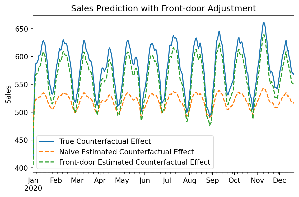 ax.set_title("Sales Prediction with Front-door Adjustment")