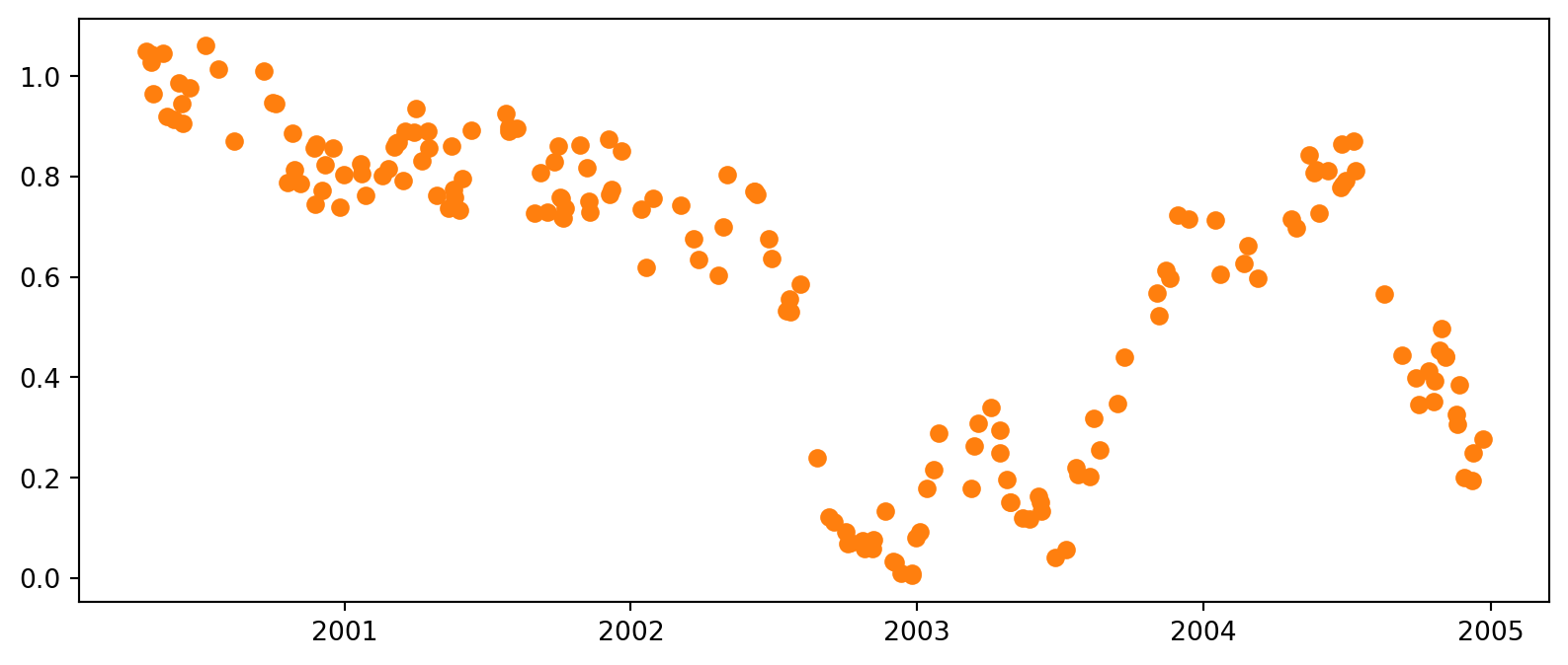 import numpy as npimport matplotlib.pyplot as pltfrom prophetverse.datasets._mmm.dataset2_branding import get_datasety, X, true_effect, true_model = get_dataset()display(X.head())